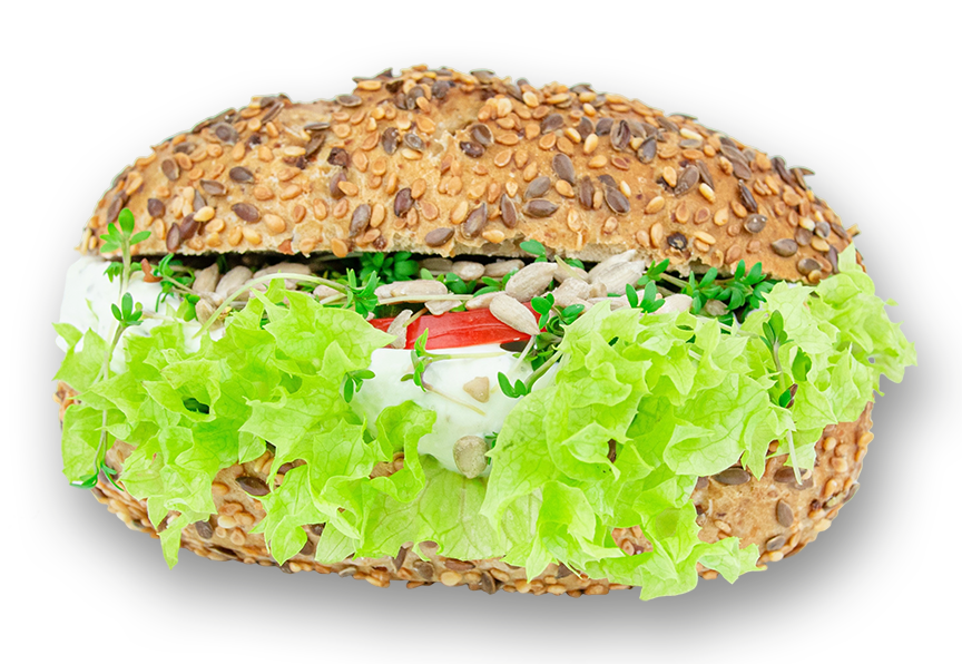 Mehrkornbrötchen • Kräuterquark • Gurke • Tomate • Kresse • Sonnenblumenkerne